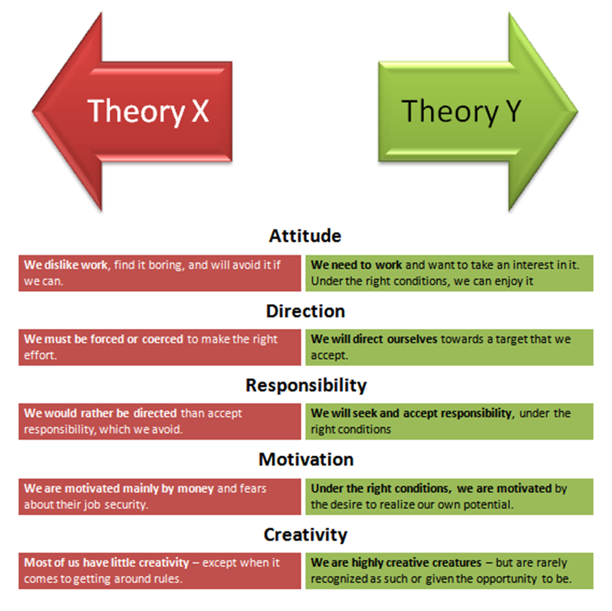 Douglas mcgregor - theory x y Douglas McGregor's XY Theory, managing an X Theory boss, and William Ouchi's Theory ZDouglas McGregor, an American social psychologist, proposed his famous X-Y theory in his 1960 book 'The Human Side Of Enterprise'. Theory x and theory y are still referred to commonly in the field of management and motivation, and whilst more recent studies have questioned the rigidity of the model, Mcgregor's X-Y Theory remains a valid basic principle from which to develop positive management style and techniques. McGregor's XY Theory remains central to organizational development, and to improving organizational culture. McGregor's X-Y theory is a salutary and simple reminder of the natural rules for managing people, which under the pressure of day-to-day business are all too easily forgotten.